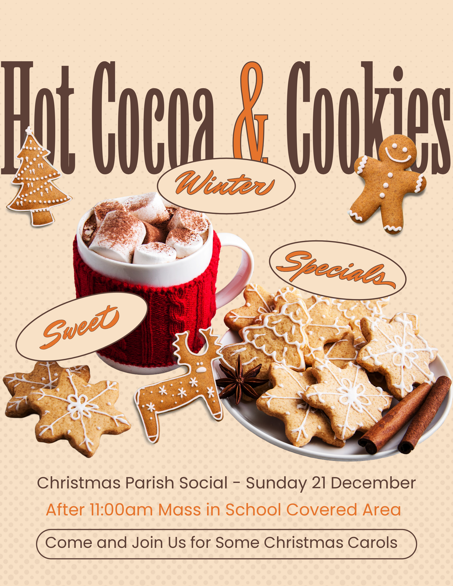 Please join us as we celebrate the Christmas season with Carols, Cookies, and Cocoa. Volunteer your time and/or bring your favorite Christmas cookies to share with your fellow parishioners. All are welcome!